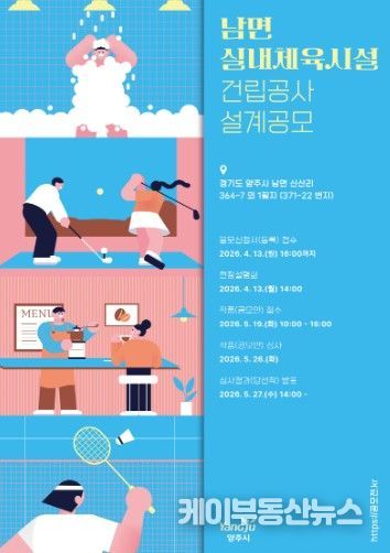 양주시 관계자는 “남면 실내체육시설은 이용자 동선, 종목별 특성, 유지관리 효율까지 종합적으로 고려한 공간 구성을 통해 체육활동과 다양한 주민 이용 편의가 조화를 이루는 생활밀착형 체육 거점으로 조성될 것”이라며 “이러한 방향을 충실히 반영한 우수한 공모안이 당선될 수 있도록 역량 있는 건축가들의 많은 참여를 기대한다”고 말했다.
