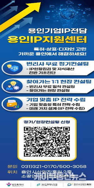 케이부동산뉴스 김교민 기자 | 용인특례시는 지역 기업의 지식재산(IP) 경쟁력 강화와 핵심 기술 보호를 위한 ‘용인IP지원센터’(이하 센터) 프로그램 참여 기업을 상시 모집한다고 8일 밝혔다.