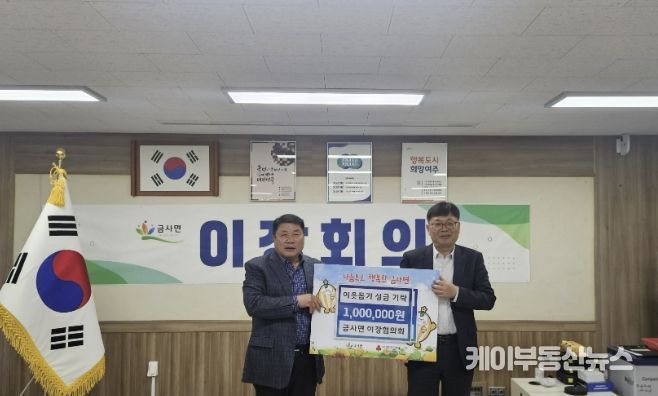 케이부동산뉴스 김교민 기자 | 금사면 이장협의회는 지난 9일 금사면행정복지센터를 방문해 지역 내 어려운 이웃을 돕기 위한 성금 100만원을 기탁했다.