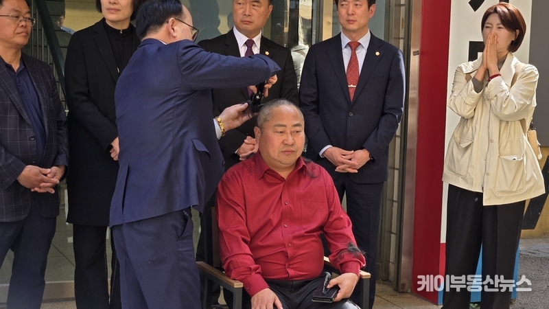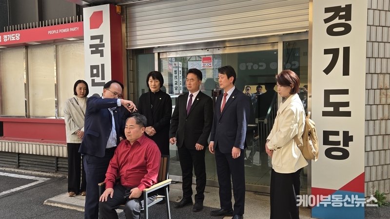케이부동산뉴스 김교민 기자 | 국민의힘 기초의회 교섭단체 대표의원 협의회장인 박현수 수원특례시의회 대표의원이 14일 오전 국민의힘 경기도당 앞에서 삭발식을 단행하며 공천 과정의 공정성 문제를 정면으로 제기했다.