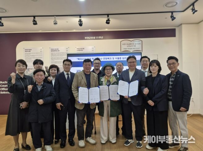 케이부동산뉴스 김교민 기자 | 부천문화원과 ㈜시니어벤처협회인재개발원, 한국요양보호사중앙회는 4월 14일 오전 11시 부천문화원에서 노인복지 사각지대에 놓인 독거 정서취약계층의 우울감과 정서적 고립에 의한 심리치유와 찾아가는 문화복지향상과 고령사회의 지역문화복지 생태계 조성에 의한 문화향유 기반 확대를 위한 업무협약(MOU)을 체결했다.