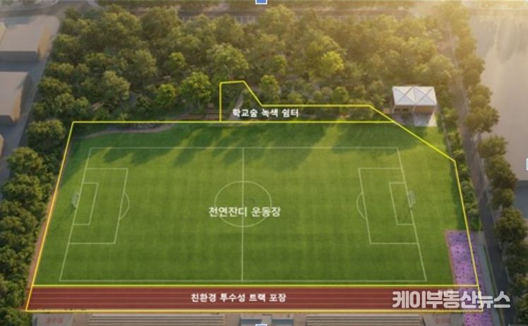 현암초에는 빗물 순환형 천연잔디 운동장이 조성된다. 빗물 순환형 천연잔디는 비가 오면 빗물을 저장해 이를 잔디 생육 등 관리에 활용하는 장치다.