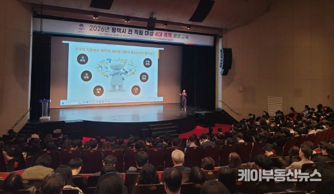 케이부동산뉴스 김교민 기자 | 평택시는 지난 14일과 15일 이틀간 평택시 남부문화예술회관에서 6급 이하 전 직원을 대상으로 4대 폭력 예방 교육을 진행했다고 밝혔다.