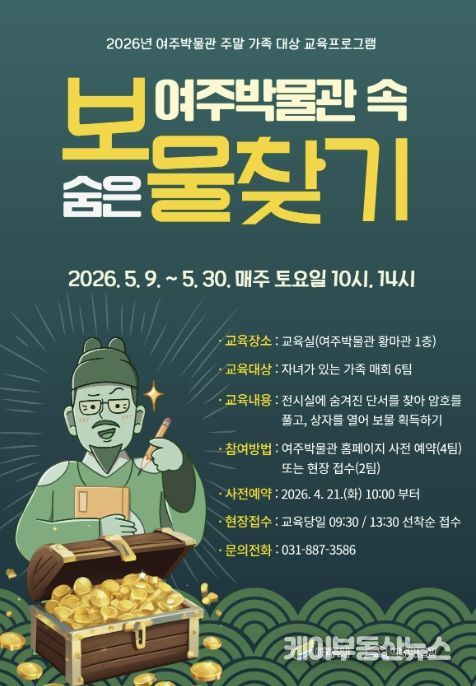 케이부동산뉴스 김교민 기자 | 여주시 여주박물관은 가정의 달 5월을 맞아 가족이 함께 지역 문화유산의 가치를 즐겁게 배우고 체험할 수 있는 ‘여주박물관 속 숨은 보물찾기’를 운영한다.