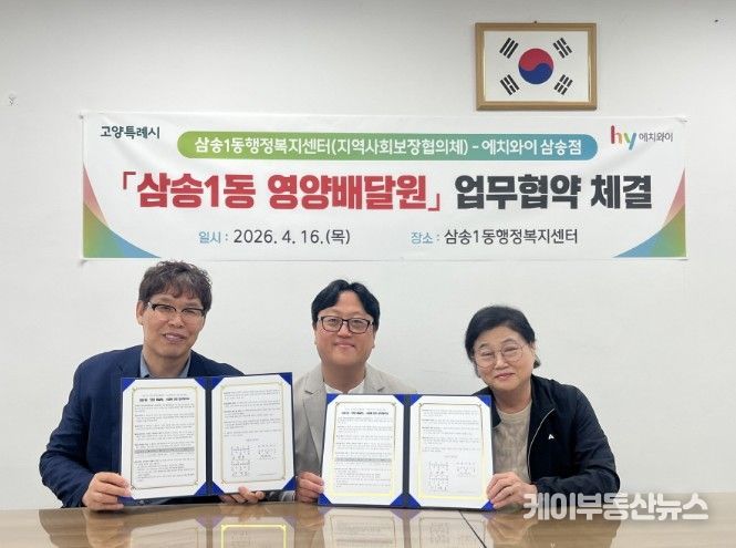 케이부동산뉴스 김교민 기자 | 고양특례시 삼송1동은 지난 16일 취약계층의 건강과 안부를 동시에 살피는 ‘영양배달원’사업 추진을 위해 지역사회보장협의체와 ㈜에치와이 고양 삼송지점이 업무협약을 체결했다.