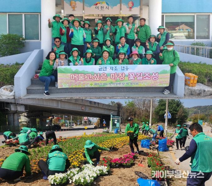 케이부동산뉴스 김교민 기자 | 마장면 새마을남·녀지도자협의회(회장 지윤정, 이희자)는 4월 18일) 새봄맞이 아름 다운 마을 가꾸기를 위하여 관내 도로변 및 쌈지공원 등에 계절 페츄니아, 메리골드, 마가렛 등의 봄꽃묘를 식재하며 마을 곳곳에 생기를 더했다. 또한, 덕평로, 오천로 등 주요 대로변을 중심으로 가로화분 및 화단에 꽃을 식재하여 화사한 봄의 시작을 알렸다.