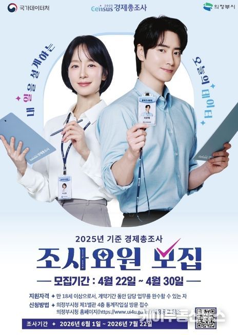 케이부동산뉴스 김교민 기자 | 의정부시는 6월 1일부터 실시되는 ‘2025년 기준 경제총조사’의 원활한 추진을 위해 조사요원 77명을 모집한다.