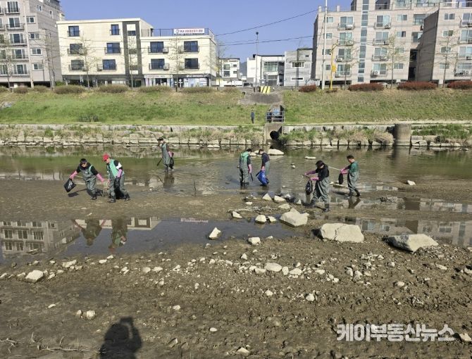 케이부동산뉴스 김교민 기자 | 포천시 새마을청년연대는 4월 18일 지구의 날을 맞아 포천천 일대에서 하천 수중까지 포함한 환경정화활동을 실시했다.