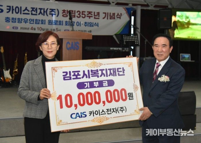 이번 기부는 창립 35주년을 기념하는 뜻깊은 나눔으로, 카이스전자는 기업의 성장과 함께 지역 사회에 받은 사랑을 환원하고자 하는 마음을 담아 기부금을 전달했다.