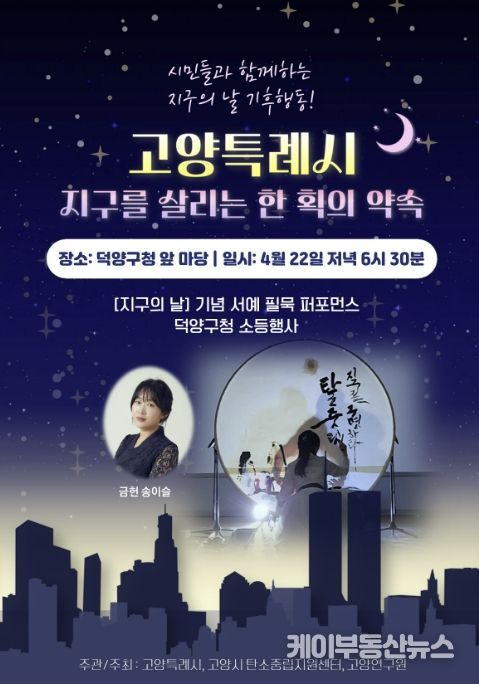 케이부동산뉴스 김교민 기자 | 고양특례시가 제56주년 지구의 날을 기념해, 오는 22일 저녁 8시부터 10분간 고양시 전역에서 소등행사를 진행한다.