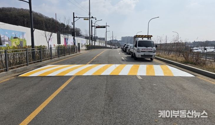 케이부동산뉴스 김교민 기자 | 오산시는 가수초등학교 통학로 안전 확보를 위해 인근 우미린 레이크시티 아파트 공사장 진출입로 주변에 과속방지턱 4개소를 신설했다고 밝혔다.