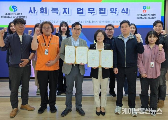 케이부동산뉴스 김교민 기자 | 하남시미사강변종합사회복지관은 지역 내 취약계층의 생활 안정과 자립 지원을 위해 4월 17일, 주택관리공단 서울지사 강남지역단과 업무협약을 체결했다.