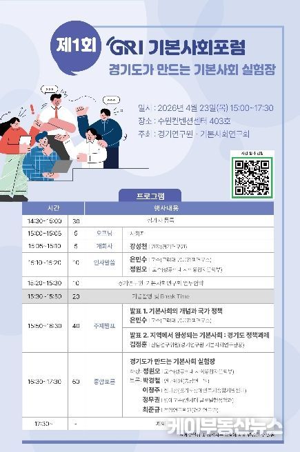 케이부동산뉴스 김교민 기자 | 경기연구원은 오는 23일 오후 3시 수원컨벤션센터 403호에서 ‘경기도가 만드는 기본사회 실험장’을 주제로 ‘제1회 GRI 기본사회포럼’을 개최한다.