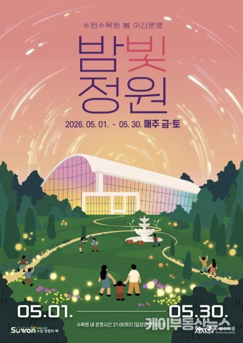 케이부동산뉴스 김교민 기자 | 수원특례시가 5월 1일부터 30일까지 매주 금·토요일 일월·영흥수목원에서 ‘2026년 수원수목원 봄 밤빛정원’을 연다.