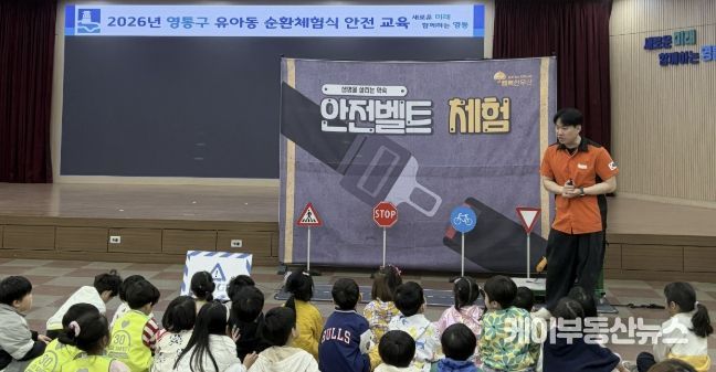 케이부동산뉴스 김교민 기자 | 수원시 영통구는 지난 20일 영통구청 대회의실에서 관내 어린이집 원아들을 대상으로 실제 상황을 가정한 '순환체험식 안전교육'을 실시했다.