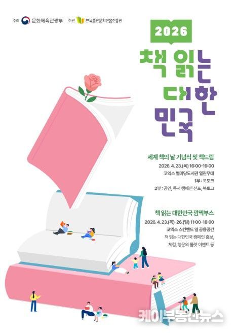 케이부동산뉴스 김교민 기자 | 문화체육관광부는 한국출판문화산업진흥원, (재)책읽는사회문화재단과 함께 4월 23일 오후 4시, 서울 코엑스 별마당도서관에서 대국민 독서 캠페인 ‘2026 책 읽는 대한민국’의 시작을 선포하고 캠페인을 본격적으로 추진한다. ‘책 읽는 대한민국’은 인공지능(AI) 시대에 국민의 생각하는 힘을 기르고, 지역 곳곳에 ‘일상 속 책 읽는 즐거움’을 확산하기 위해 마련한 캠페인이다. 최휘영 장관은 캠페인 선포식을 찾아 ‘책 읽는 즐거움’ 확산에 앞장선다.