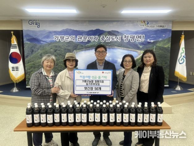 케이부동산뉴스 김교민 기자 | 가평군농협 청평지점 농가주부모임이 20일 지역 내 어려운 이웃을 위해 직접 만든 맛간장 50개를 청평면에 기탁했다.