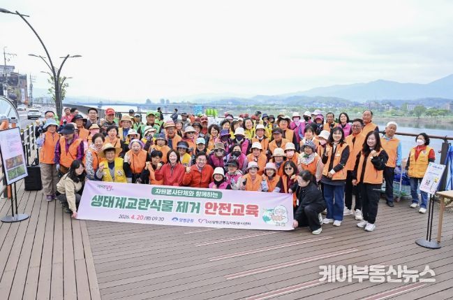 케이부동산뉴스 김교민 기자 | 양평군종합자원봉사센터는 지난 20일 오전 9시 양평남한강테라스 하부 산책로 일대에서 ‘2026년 자원봉사 리빙랩 3고 YP(줍고·잇고·지키고) 사업’의 일환으로 생태계 교란 식물 제거 활동을 실시했다.