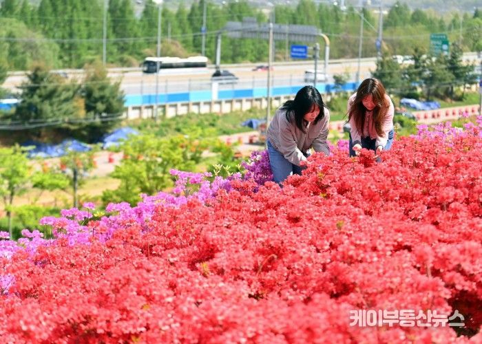 약 1만 1천㎡ 부지를 가득 채운 영산홍은 잎보다 꽃이 먼저 피어나는 특성 덕에 빈틈없는 붉은 빛을 선사한다. 꽃길 어디서든 카메라만 대면 ‘인생 사진’을 건질 수 있다는 입소문이 퍼지면서 인스타그램과 블로그 등 사회관계망서비스(SNS)에서도 반응이 뜨겁다.