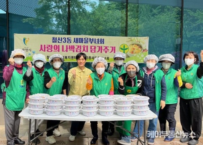 케이부동산뉴스 김교민 기자 | 광명시 철산3동 새마을부녀회는 21일 철산3동 행정복지센터 앞마당에서 ‘사랑의 열무김치 나눔 행사’를 열었다.