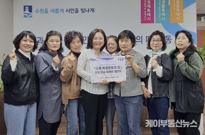 케이부동산뉴스 김교민 기자 | 수원시 영통구 매탄3동은 지난 21일, 매탄3동 새마을부녀회가 ‘수원 독립운동의 길 조성 모금 릴레이’에 전 회원 동참 의사를 밝히며 뜻깊은 참여를 이어갔다고 밝혔다.