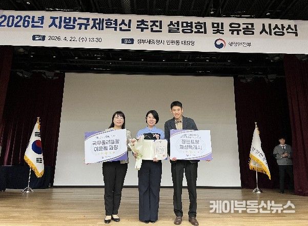 케이부동산뉴스 김교민 기자 | 화성특례시는 행정안전부가 주관한 ‘2025년 지방규제개혁 유공 정부포상’에서 단체 부문 행정안전부장관 표창을, 이윤희 효행구 돌봄복지과장이 개인 부문 국무총리표창을 각각 수상했다고 밝혔다.
