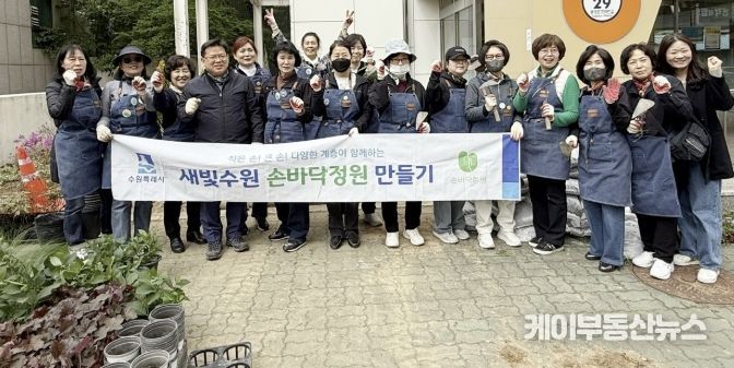 케이부동산뉴스 김교민 기자 | 수원시 영통구 영통1동은 지난 4월 22일 주민과 지역 단체가 함께 참여하는 ‘손바닥정원 조성 행사’를 개최했다. 이번 행사는 지난 정원 조성 활동에 대한 주민들의 높은 관심과 참여를 바탕으로 다시 추진됐다.