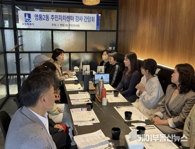 케이부동산뉴스 김교민 기자 | 수원시 영통구 영통2동은 지난 22일 영통2동 주민자치회가 주민자치센터 프로그램 운영과 관련한 다양한 의견을 수렴하고, 보다 내실 있는 운영과 활성화 방안을 모색하기 위해 주민자치센터 프로그램 강사진과의 간담회를 개최했다고 밝혔다.