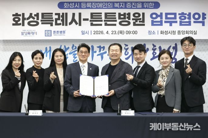 케이부동산뉴스 김교민 기자 | 화성특례시는 23일 본관 2층 중앙회의실에서 튼튼병원과 화성시 등록장애인의 건강한 생활 지원과 삶의 질 향상을 위한 업무협약을 체결했다.