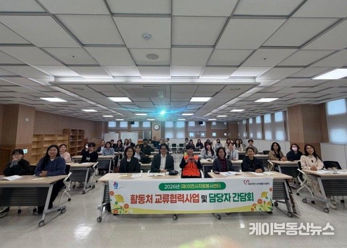 케이부동산뉴스 김교민 기자 | (재)이천시자원봉사센터는 4월 22일, 자원봉사 활성화를 위한 ‘2026년 상반기 활동처 관리자 교류협력’ 간담회를 개최했다. 이날 간담회에는 관내 활동처 관리자 50여 명이 참석해 자원봉사 운영 역량 강화를 위한 교육과 소통의 시간을 가졌다.
