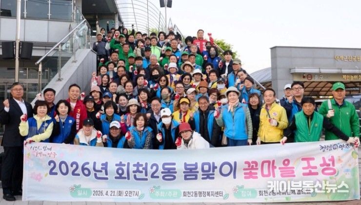 케이부동산뉴스 김교민 기자 | 양주시 회천2동은 최근 쾌적하고 아름다운 도시 경관 조성을 위해 주민들과 함께 ‘2026년 봄맞이 꽃마을 조성’ 행사를 실시했다.