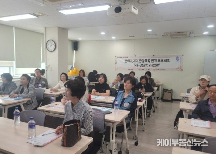 ‘은퇴자, 지역 환경교육 인재 프로젝트 Re-Start 인생 2막’은 경기도자원봉사센터 공모사업에 선정돼 사업비 420만 원을 지원받아 운영하는 사업이다. 이날 예비 교육에는 은퇴자 20여 명이 참석해 환경교육 강사의 역할과 활동 방향을 안내받고, 향후 교육과정과 자원봉사 계획을 공유했다.