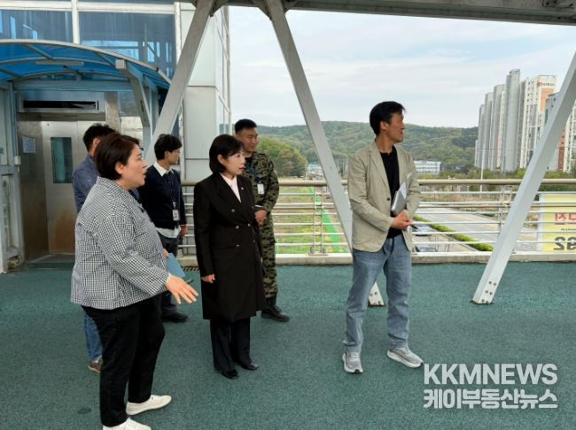 케이부동산뉴스 김교민 기자 | 이천시의회 송옥란 의원이 지난 17일, 마장지구 오천보도육교 일대를 직접 찾아 주민 민원 현장을 둘러보고, 해결 방안 마련에 나섰다.