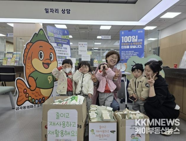 케이부동산뉴스 김교민 기자 | 수원시 권선구 금곡동 행정복지센터는 지난 22일 오전 10시, 행정복지센터 민원실에서 시립수원가온어린이집 원생 10여 명이 참여한 ‘금곡이가 알려주는 재활용 놀이터’ 체험 행사를 진행했다고 밝혔다.