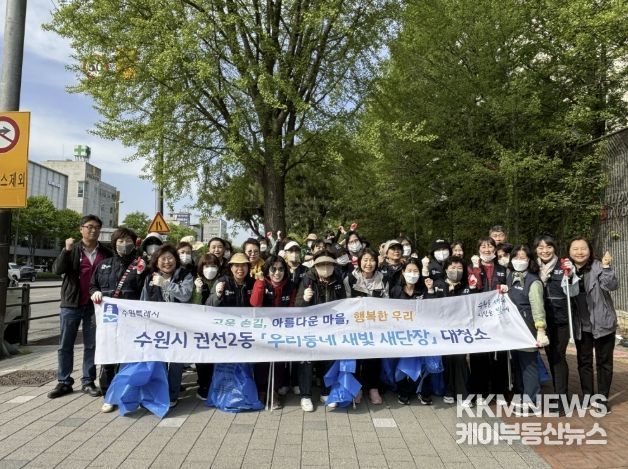 케이부동산뉴스 김교민 기자 | 수원시 권선구 권선2동 행정복지센터는 지난 22일 관내 단체 및 지역주민과 함께 '우리 동네 새빛 새 단장' 대청소를 추진했다고고 밝혔다.