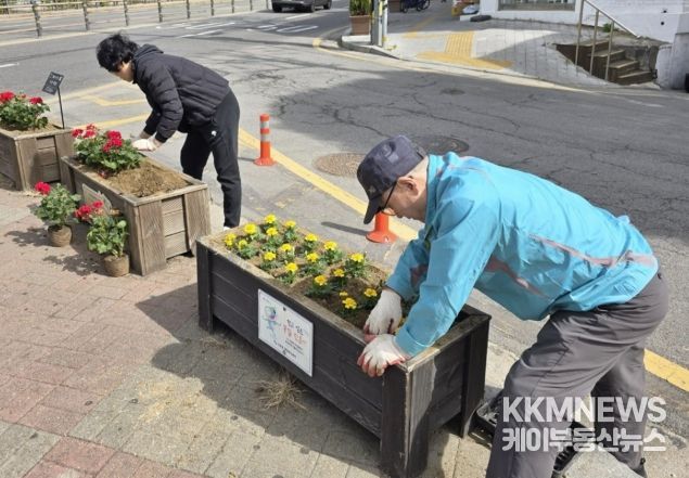 이번 활동은 통장협의회를 중심으로 주민들이 직접 참여하고 주도한 환경정비로, 관내에 설치된 크고 작은 화분 약 40여 개에 다양한 봄꽃을 식재하고 주변 환경을 함께 정비하며 마을 곳곳에 화사한 봄기운을 더했다.