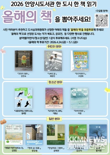 KKMNEWS 김교민 기자 | 안양시는 2026년 한 도시 한 책 읽기 ‘올해의 책’ 선정을 위한 시민 선호도 조사를 오는 5월 1일까지 온·오프라인으로 진행한다고 24일 밝혔다.