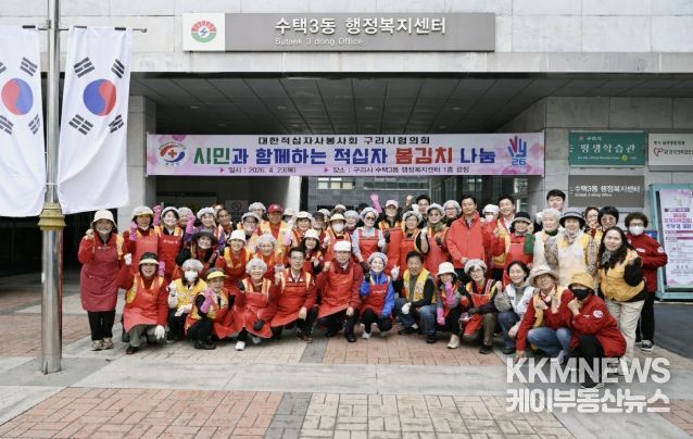 KKMNEWS 김교민 기자 | 대한적십자사봉사회 구리시협의회는 지난 23일 수택3동 행정복지센터 1층 광장에서 '2026년 시민과 함께하는 적십자 봄김치 나눔’행사를 실시했다고 밝혔다.