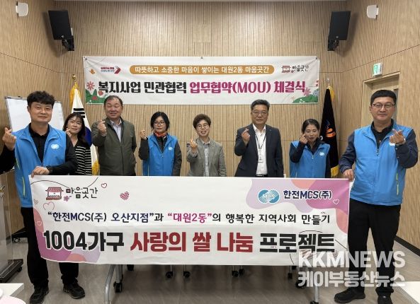 KKMNEWS 김교민 기자 | 오산시 대원2동 행정복지센터와 대원2동 지역사회보장협의체는 지난 22일 한전MCS(주) 오산지점과 지역 내 취약계층 지원을 위한 복지업무협약을 체결하고, ‘1004가구 사랑의 쌀 나눔 프로젝트’ 추진을 위한 발대식을 개최했다고 밝혔다.