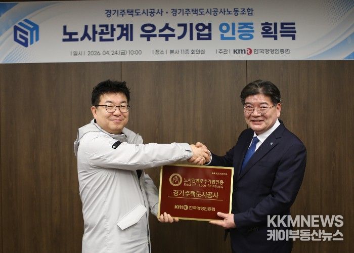 KKMNEWS 김교민 기자 | 경기주택도시공사(GH)가 상호 신뢰와 존중의 건강한 노사관계 구축을 인정받아 ‘2026 노사관계 우수기업’ 인증을 최초로 획득했다고 24일 밝혔다.