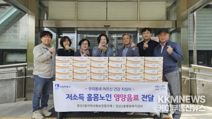 KKMNEWS 김교민 기자 | 수원시 권선구 권선2동 지역사회보장협의체는 지난 23일, 저소득 홀몸노인 건강증진과 정서적 안정을 위한 “우리 동네 어르신 건강지킴이 영양음료 전달사업”을 진행했다.