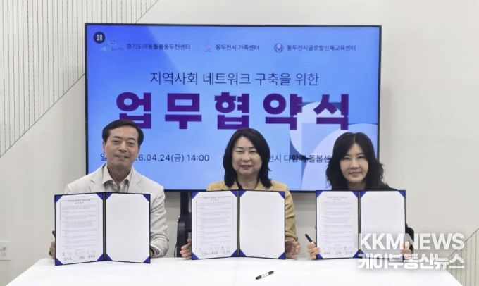 KKMNEWS 김교민 기자 | 동두천시글로벌인재교육센터는 지난 24일 동두천시가족센터, 동두천시다함께돌봄센터1호점(경기도아동돌봄동두천센터)과 함께 지역사회 네트워크 구축을 위한 3자 간 업무협약(MOU)을 체결했다고 밝혔다.
