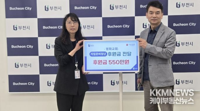 KKMNEWS 김교민 기자 | 부천시는 지난 24일 중동 힐스테이트 프로그램실에서 ‘평화교회 자립준비청년 돕기 후원금 전달식’을 열었다. 이번 전달식은 평화교회가 지역 내 아동복지 향상과 나눔 문화 확산을 위해 마련됐다.