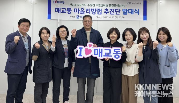 KKMNEWS 김교민 기자 | 수원시 팔달구 매교동는 지난 23일, 주민자치회와 함께 매교동 행정복지센터에서 주민 주도의 마을 공동체 활성화와 수원천 내 휴식 공간 조성을 위한 ‘마을리빙랩 추진단’ 발대식을 개최했다.