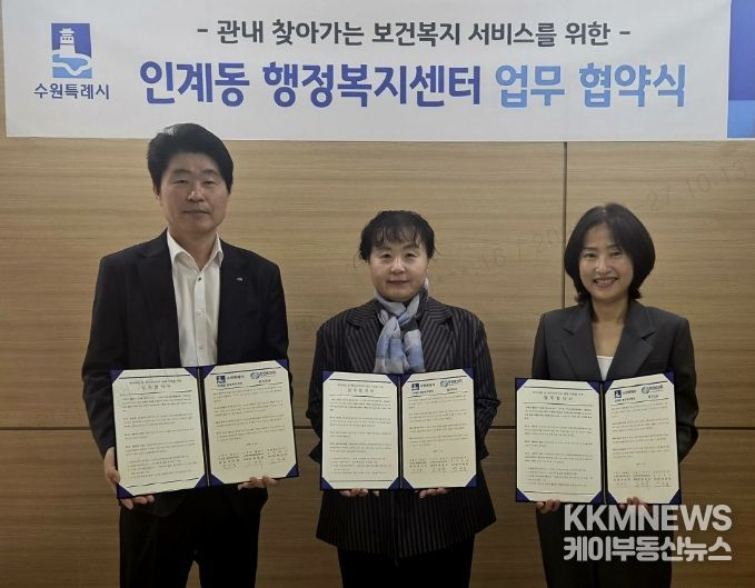KKMNEWS 김교민 기자 | 수원시 팔달구 인계동은 지난 24일, 지역사회보장협의체과 한전MCS(주) 경기지사 및 직할지점과 함께 취약계층 발굴과 지속적인 인적안전망 활동 참여를 위한 업무 협약을 체결했다.