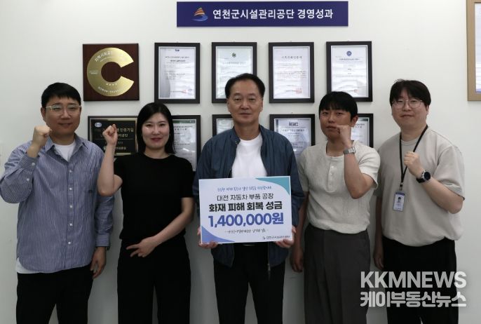 KKMNEWS 김교민 기자 | 연천군시설관리공단은 지난 23일 대전 자동차 부품 공장 화재로 피해를 입은 근로자 및 이재민 지원을 위한 성금 1,400,000원을 대한적십자사에 전달했다고 밝혔다.