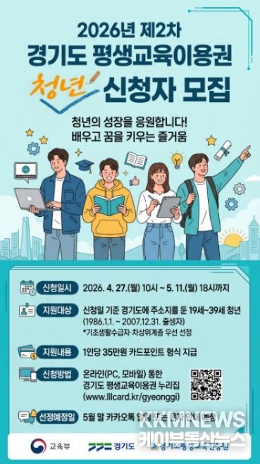KKMNEWS 김교민 기자 | 평택시는 경제적 여건에 따른 교육 격차를 완화하고 청년들의 자기계발을 지원하기 위해 녪년 제2차 경기도 평생교육 이용권’신청 접수를 27일부터 시작한다고 밝혔다.