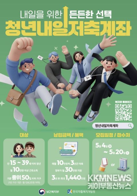 KKMNEWS 김교민 기자 | 부천시는 일하는 저소득층 청년의 안정적인 사회 정착과 자산 형성을 지원하기 위해 ‘2026년 청년내일저축계좌’ 신규 가입자를 5월 4일부터 5월 20일까지 모집한다.