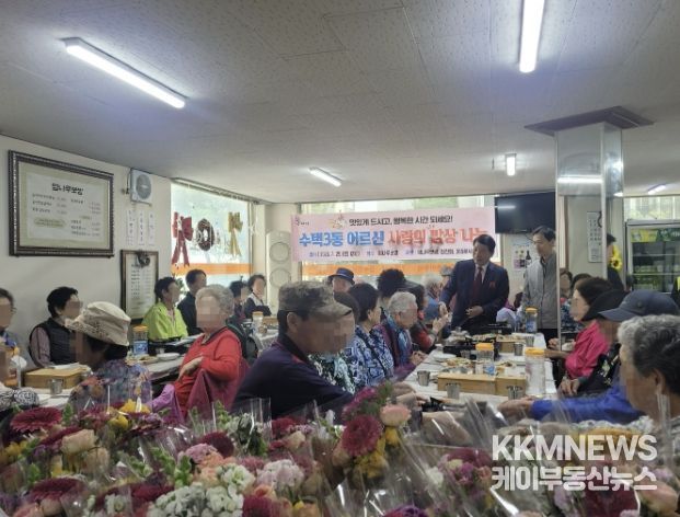 KKMNEWS 김교민 기자 | 구리시 수택3동 행정복지센터는 지난 4월 25일 관내 음식점 엄나무보쌈과 함께 독거어르신들을 위한 사랑의 밥상 나눔 행사를 했다고 밝혔다.