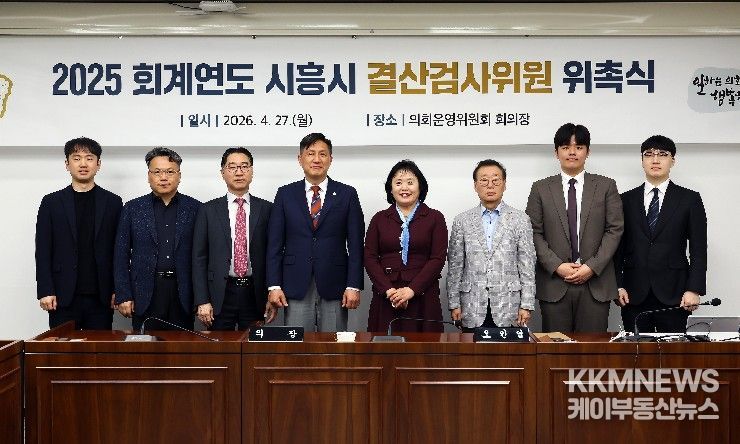 KKMNEWS 김교민 기자 | 경기 시흥시의회가 4월 27일 의회운영위원회 회의장에서 2025회계연도 시흥시 결산검사위원 위촉식을 개최했다.